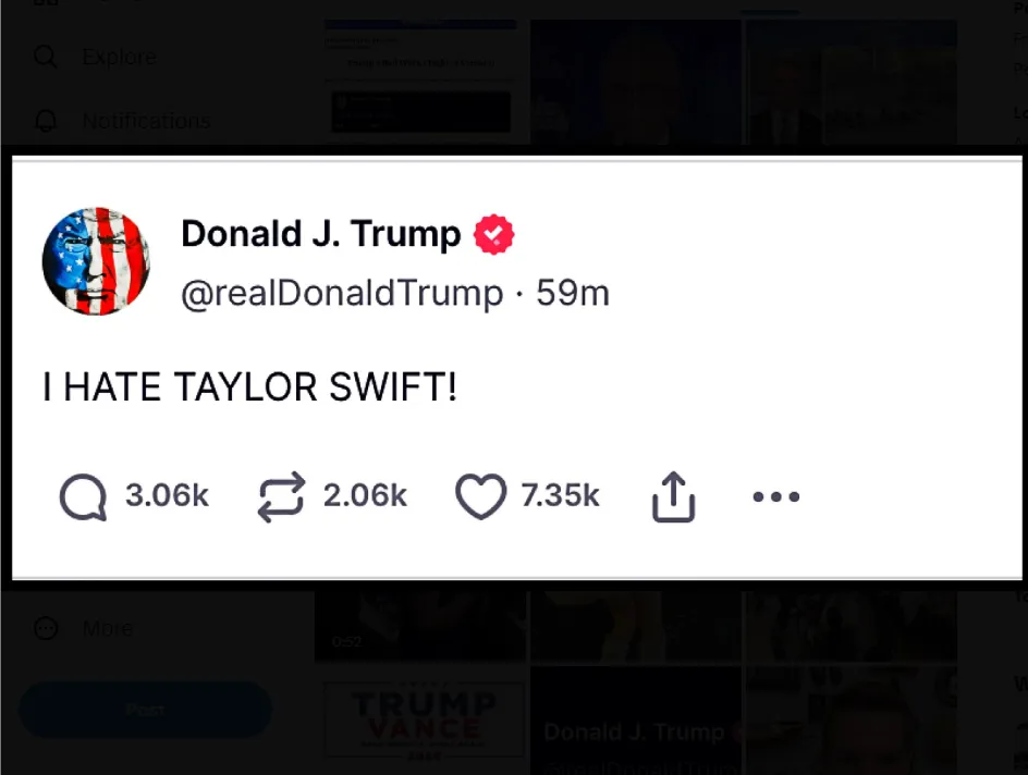 La decisión del ex mandatario Donald Trump de expresar su odio contra Taylor Swift en las redes sociales ha desatado una serie de reacciones en las redes sociales.